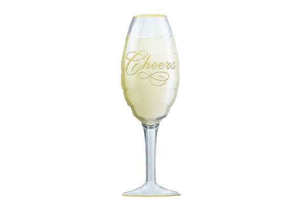 「Cheers」文字入りのシャンパングラス風船で乾杯ムードを演出!大きめサイズでパーティー装飾・開店祝い・誕生日・結婚式などに最適。ヘリウム・空気対応。5枚セット。