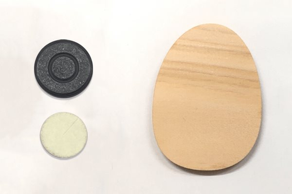 エッグ型の木のプレートにデザインするイースター工作。マグネットとピンからお選びいただけます。
