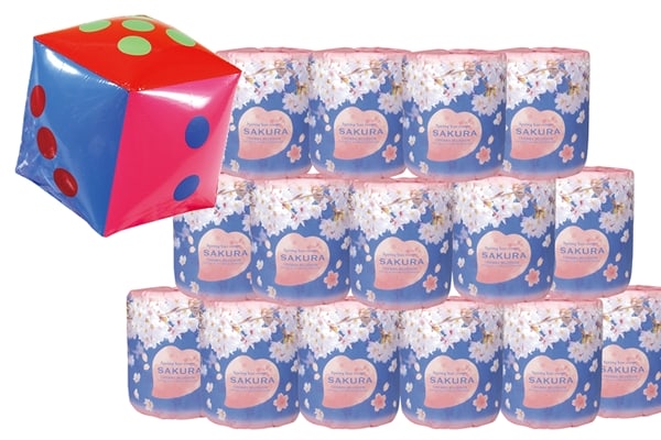 桜柄のトイレットペーパーが景品のサイコロ抽選キット。