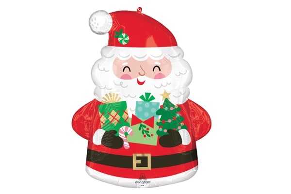 サンタがプレゼントを持って微笑んでいるデザイン風船。他にも