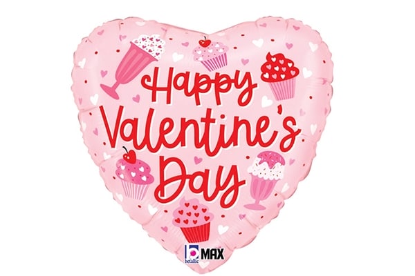 バレンタインスウィーツフィルム風船5枚セット。ハートやスイーツ柄でバレンタイン装飾におすすめの装飾風船。