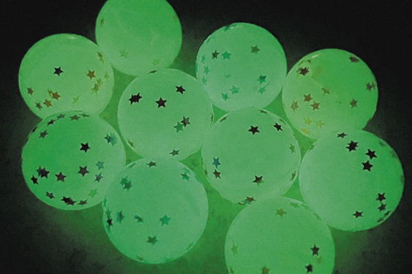 蓄光タイプで、暗いところでは星が影のように映るスーパーボール。