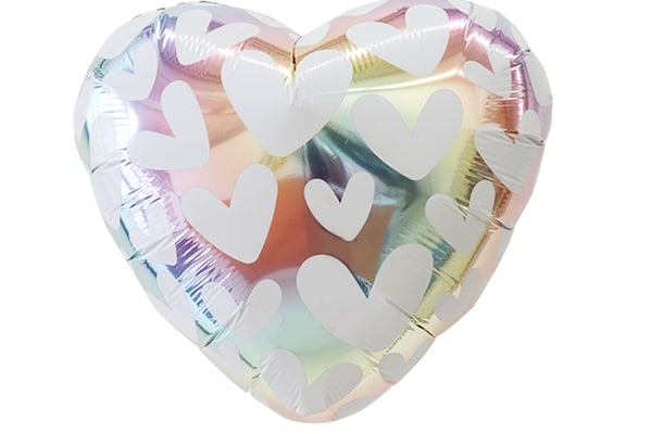虹色のカラーリングにハートモチーフを散りばめた、楽しく目を引く17インチサイズのフィルム風船です。会場をパッと明るく見せてくれるデザインで、誕生日会や各種イベント、キッズ向けの飾り付けにも好相性。バレンタインシーズンの装飾としても使いやすく、飾るだけで華やかな雰囲気を演出できます。他にもバレンタイン風船もあります。