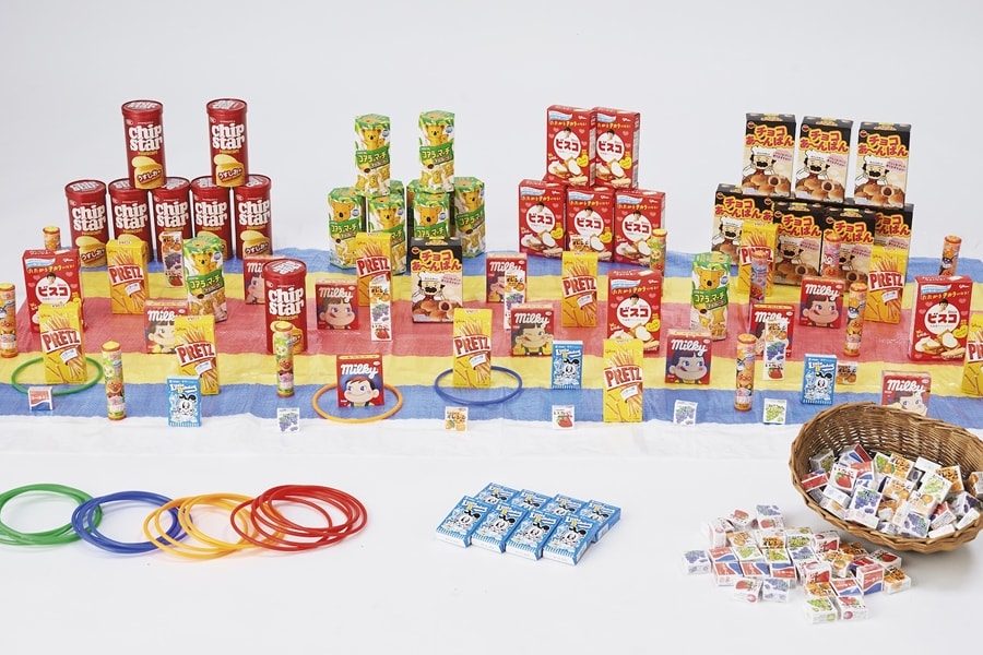 大人数に対応するお菓子がいっぱいの縁日向けお菓子輪投げ大会。